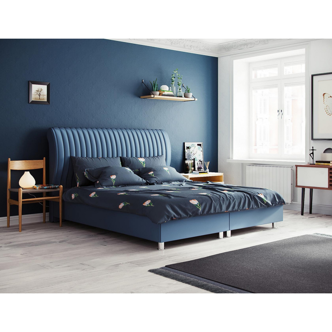 Элегантная база и спинка с декоративной отстрочкой с обивкой из мебельной ткани. Данная модель идет в комплекте с вкладным, жестким кроватным основанием, оснащенным двухсторонним газоподъемным механизмом с двухсторонним фиксатором. Подъемный механизм, которым оснащено основание кровати, добавляет комфорта в использовании модели, облегчая доступ к вместительному ящику для белья.