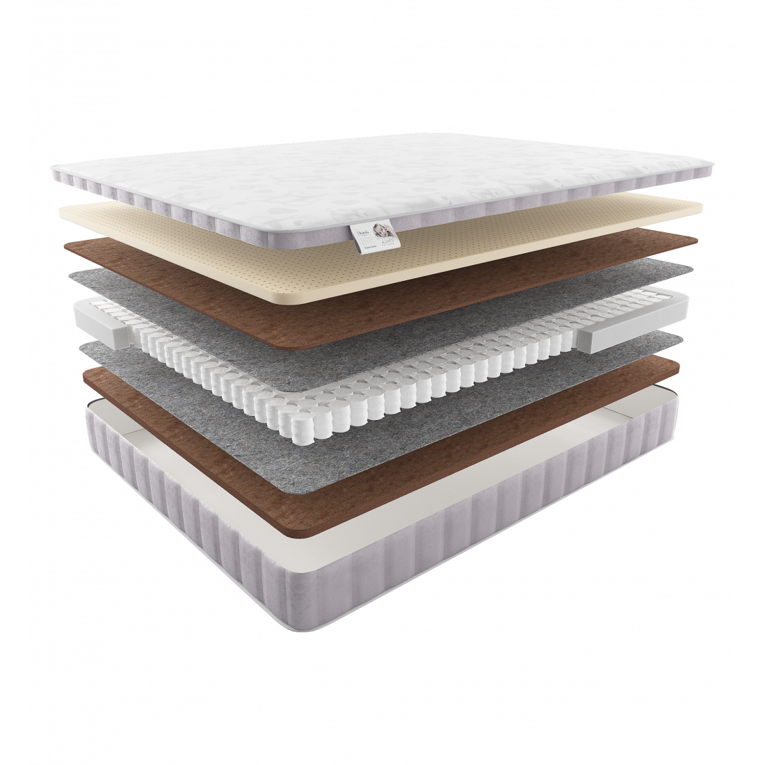 Двусторонний матрас с разными сторонами жесткости. С одной стороны более плотный кокос 100-ой плотности, с другой натуральный латекс с одним сантиметром латексированного кокоса. Обе стороны прекрасно подходят для формирования правильной осанки и здорового сна ребенка. Независимый пружинный блок в основе матраса будет надежной основой, которая поможет ощутить весь комфорт пружинного матраса.