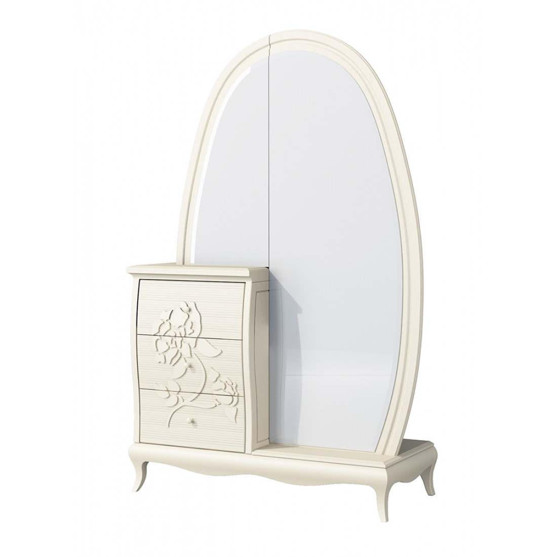 Комбинированный шкаф для одежды и белья с зеркалом МН-218-10 серии Астория от фабрики Мебель-Неман представляет собой разновидность оригинального трюмо и небольших размеров комода, состоящего из зеркала в полный рост в форме эллипса и вместительной тумбы. Купить утонченный и эффектный комплект для спальни стоит в любую просторную комнату – он придаст ощущения будуарности и великолепия в интерьер.