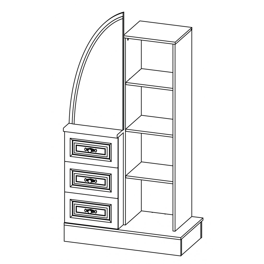 Комбинированный шкаф СП-001-10П серии Василиса (Мебель-Неман) – щедрый подарок для тех, кто грезит о создании неповторимо изысканного романтичного интерьера в спальне. Купить модель комбинированного шкафа можно вместо туалетного столика – он превосходно будет смотреться в просторных интерьерах.