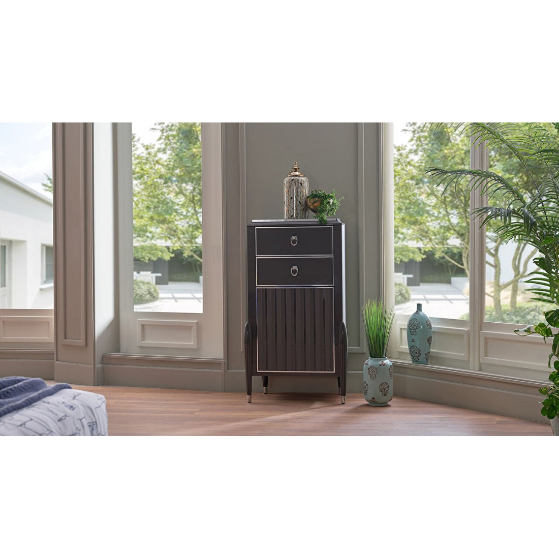 Шкаф 2-х дверный с глухой дверью и зеркальной Неаполь Ясень анкор светлый (патина "серебро")
