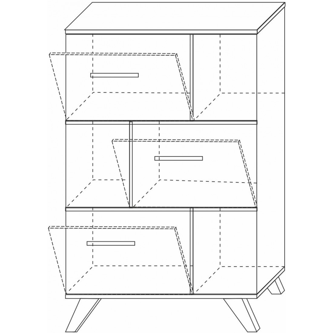 Шкаф низкий с нишами Вега Скандинавия (глянец, белый + дуб каньон)