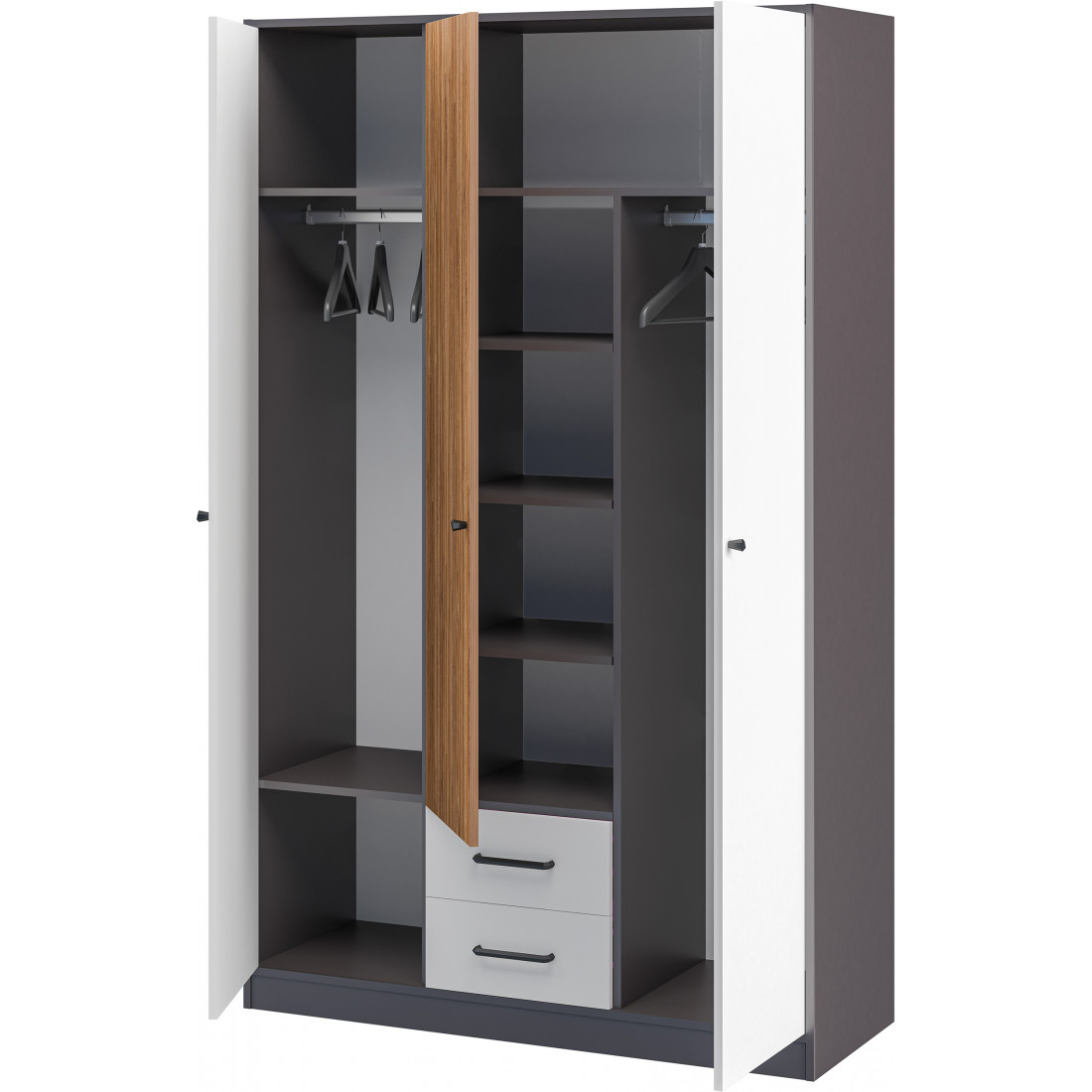 Цветовая палитра коллекции Мальма: белый, графит, Дуб Стирлинг. Спокойные оттенки мебели станут прекрасным фоном для ярких аксессуаров и вещей, помогут избежать лишнего визуального шума в интерьере.